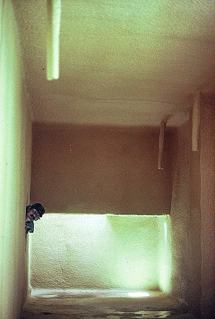 Urbanic’s System Draco II -Upon loading the digester with water, it was discovered that the B-bond was a major failure! Water streamed out of a few retaining bolts holding the greenhouse. In spite of its inhibition of desired heat flows, I had a thin layer of urethane foam sprayed over the entire inside of the digesters.