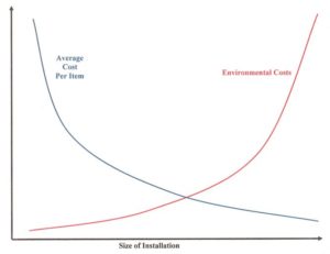 One of the major illusions of conventional economics is the “economics of scale.” This narrow-minded myth claims that increasing the scale of an economic activity will almost always